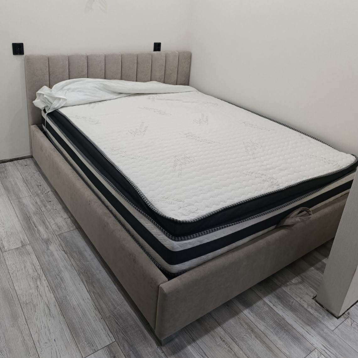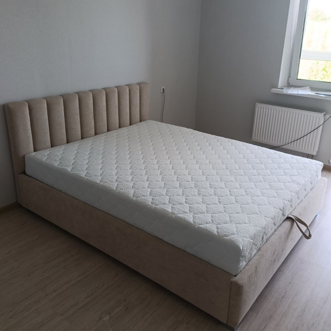 При заказе выбрали цвет, качество ткани, опоры метал угловые. Разница в стоимости не большая, поэтому мы выбрали с подъемным механизмом и очень довольны, он позволяет легко открывать большой отсек для хранения постельного белья и других вещей, что очень удобно и помогает поддерживать порядок в комнате. Матрас заказывали тут же, выбрали тип 9А из коллекции Элит, он идеально поддерживает тело и дарит комфортный сон.