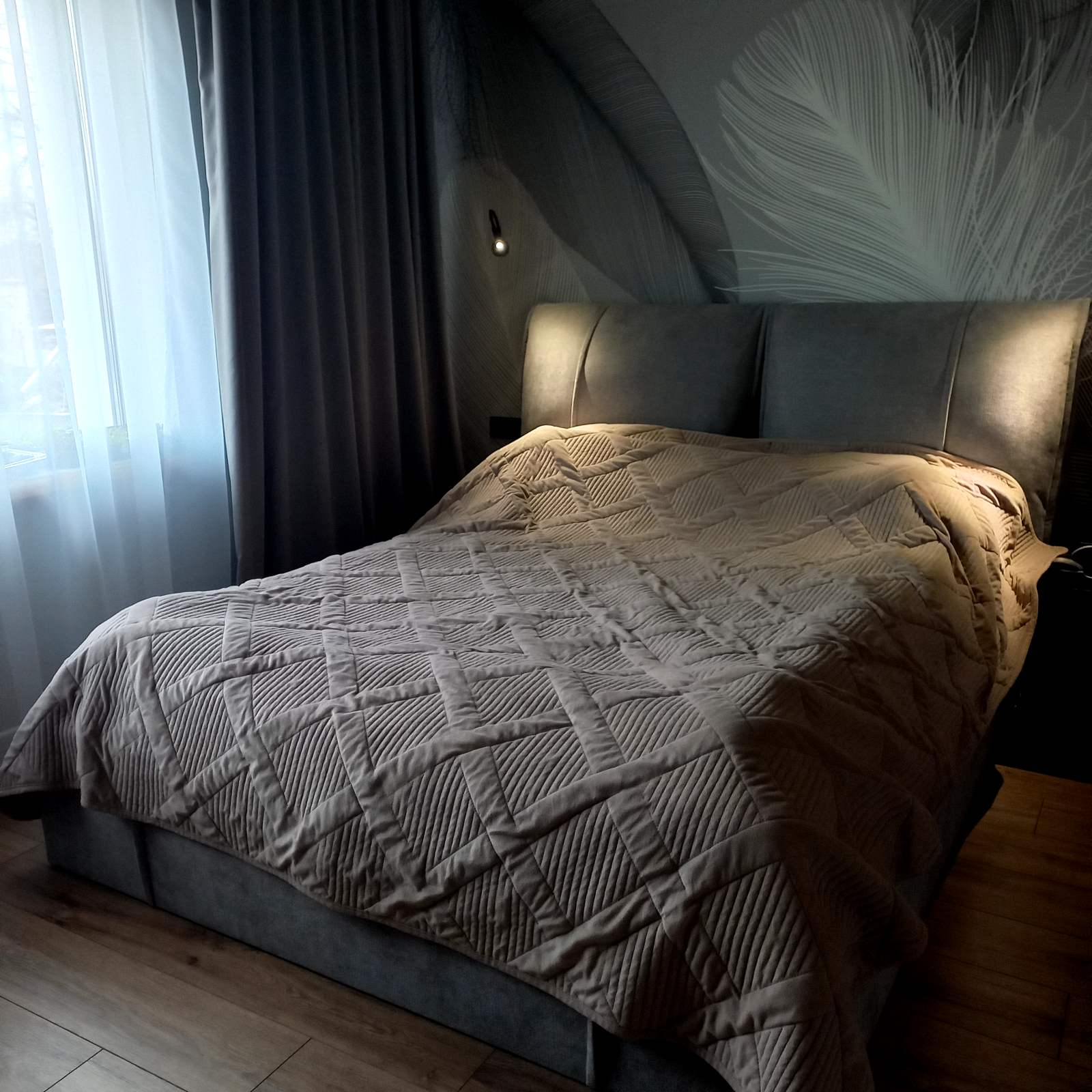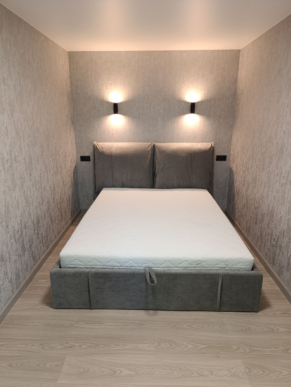 Кровать шикарная, мягкое изголовье — моя мечта. Лежишь, читаешь или смотришь телевизор. Это вау!!! Менеджер помогал выбирать. В интерьере спальни смотрится гармонично, мне нравится. Спать удобно. Рекомендую всем!