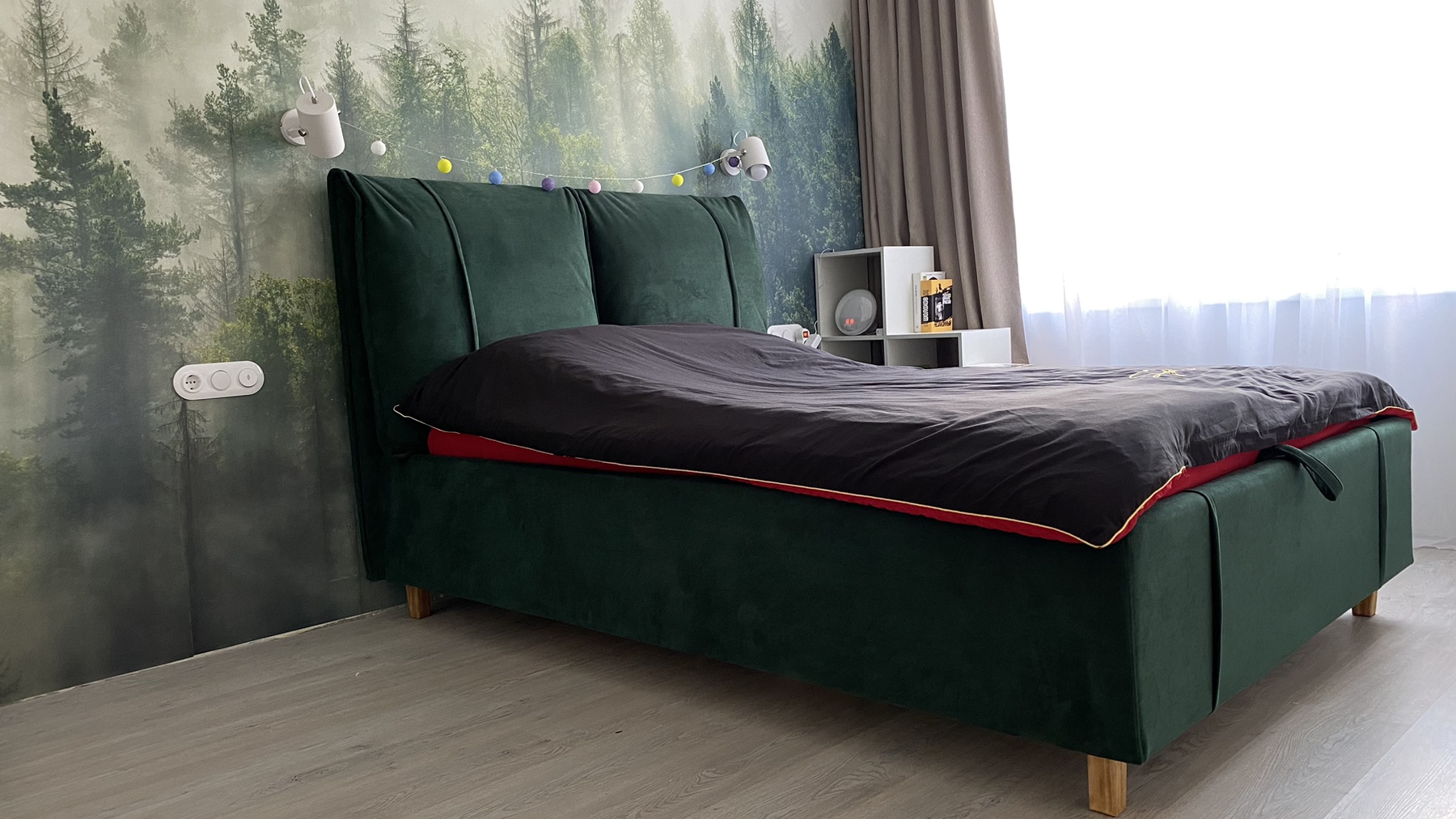 Кровать сразу привлекла наше внимание при посещении салона. Мысль о том, что она необычная, но очень классная не отпускала меня. Обошли кучу мебельных салонов в поиске оптимального варианта и каждый раз возвращались в ЭОС, т.к. кровать очень эффектная. Изголовье исполнено большими мягкими подушками, наполненными силиконовыми волокнами. Я любитель почитать перед сном и это очень удобное для меня решение. Все продумано в этой модели для удобства, на царгах ткань съемная, можно снимать и стирать по мере надобности. Есть подъемный механизм для хранения спальных принадлежностей. Решение было принято в пользу данной модели. Заказ оформлен, пришлось подождать изготовления нашей кровати под наши запросы (цвет, качество тканей, опоры) на стоимость не влияют, что удивительно, во всех салонах что мы посещали стоимость увеличивалась существенно когда выбираешь ткань и цвет под свои запросы. Время пролетело быстро, кровать доставили и собрали, матрас заказывала тут же, доставили все вместе и я не перестаю любоваться своей покупкой каждый день. Очень удобная и красивая кровать, освежила интерьер спальни. Покупкой очень довольны. Спасибо ЭОС.
