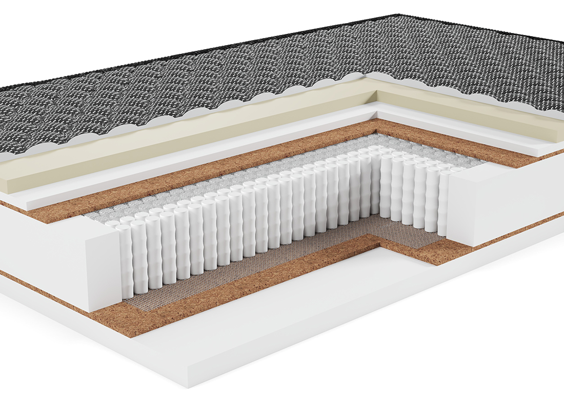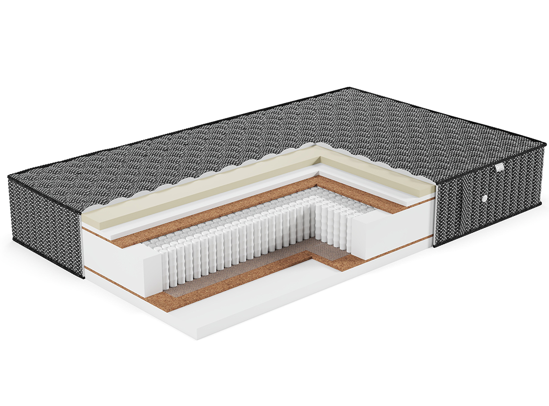 Материал потрясающей прочности. Используется как дополнительный слой, придающий жесткость и изолирующий пружинный блок от настилочных слоев. Делает матрас ещё прочнее и долговечнее