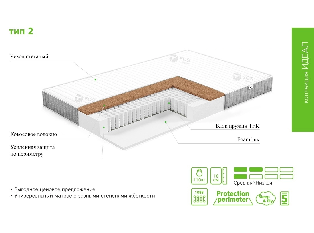 Матрас EOS Идеал 2 классический матрас с разными степенями жесткости.