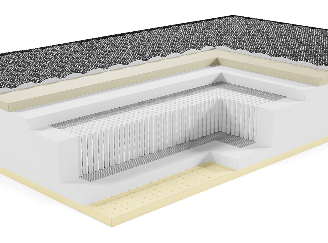 Материал потрясающей прочности. Используется как дополнительный слой, придающий жесткость и изолирующий пружинный блок от настилочных слоев. Делает матрас ещё прочнее и долговечнее