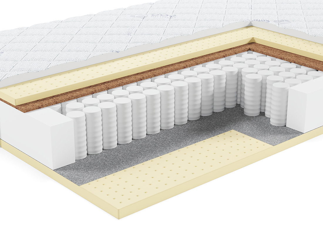 В пружинном блоке, усовершенствованное расположение пружин в виде пчелиных сот, позволяет увеличить плотность пружин до 320 пр/м2. Благодаря этому матрасы обладают исключительной устойчивостью к повышенным нагрузкам на протяжении длительного времени.