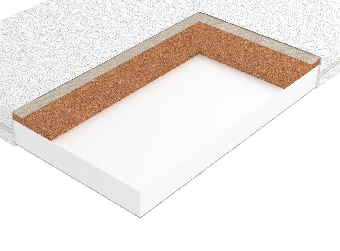 · Кокосовое волокно. Натуральный гипоаллергенный материал. Благодаря пропитке волокна прочно скреплены в цельную плиту. Кокосовое волокно придает матрасу жёсткость и обладает бактерицидными свойствами.